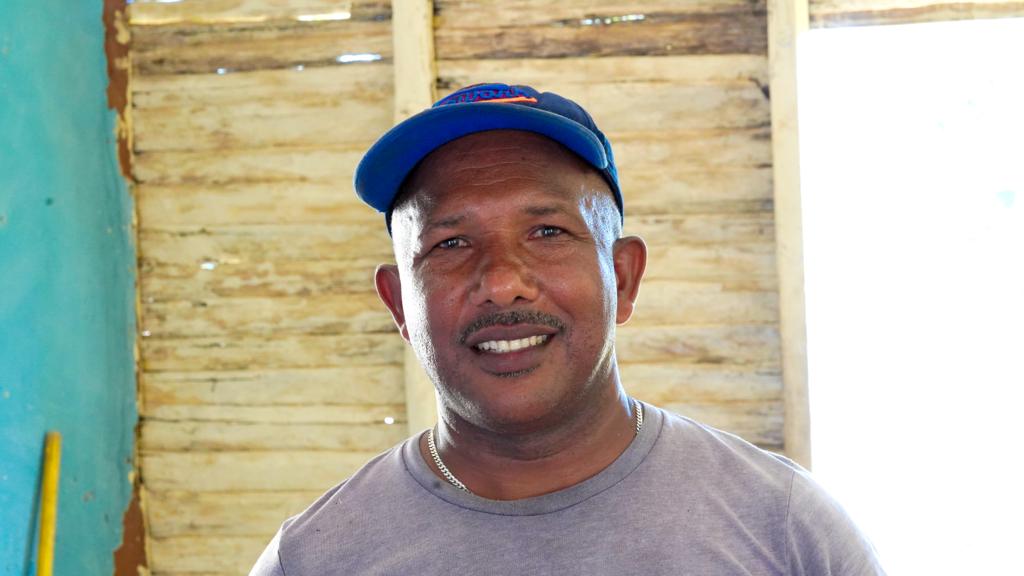 NAGUA, MARIA TRINIDAD SANHEZ.-Entre aplausos y visiblemente emocionado, así recibió Florentino Paulino, a los colaboradores del Plan Social de la Presidencia, quienes luego de concluir el techado de su vivienda, comenzaron amueblarla.